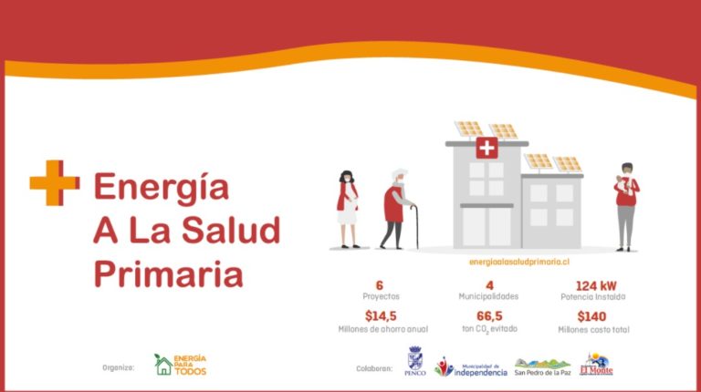 En el marco de la pandemia Covid 19, se dio vida a “Energía a la Salud Primaria”. Esta iniciativa de la Fundación Energía para Todos, junto a la colaboración de los Municipios de Independencia, San Pedro de la Paz, El Monte y Penco, busca ser un aporte a la Salud Pública del país, incorporando energías renovables en Centros de Salud Primaria.