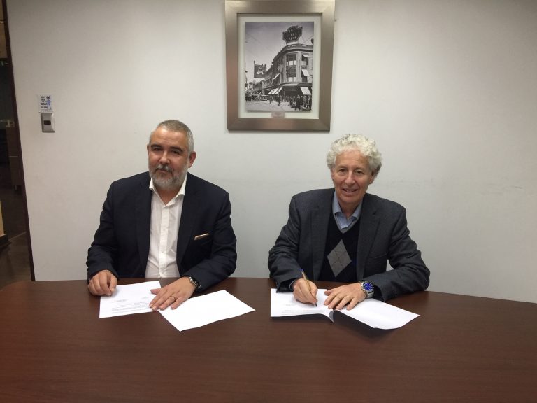Víctor Grimblatt, presidente de AIE; y Rodrigo Castillo, director ejecutivo de la Asociación de Empresas Eléctricas, sellaron un acuerdo de colaboración mutua entre ambas instituciones, con el objetivo de fortalecer las industrias y los negocios del sector eléctrico en nuestro país.