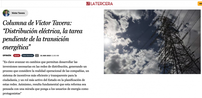 En una columna publicada en La Tercera, el Presidente del Directorio de Empresas Eléctricas, Víctor Tavera planteó que “es clave avanzar en cambios que permitan desarrollar las inversiones necesarias en las redes de distribución, generando un proceso que considere la realidad operacional de las compañías, un sistema de incentivos más eficiente y transparente para la ciudadanía, y un rol más activo del Estado en la planificación de estas redes. Asimismo, resulta fundamental que esta reforma sea pensada con una mirada que ponga a los usuarios de energía como protagonistas”.
