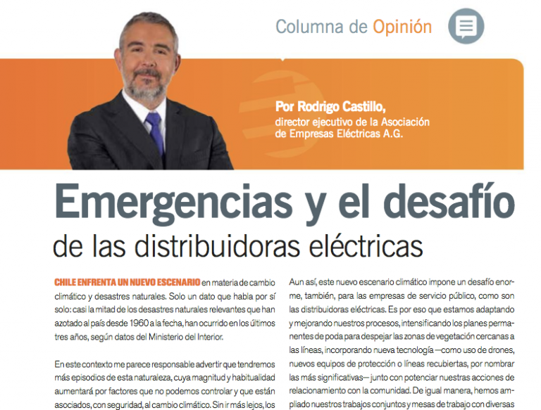 Es prioritario que, como país, estemos mejor preparados frente a estos eventos, lo que involucra el compromiso de actores públicos y privados, como también de la comunidad. Desde el Estado, se requiere de un cambio regulatorio que ponga la calidad de servicio como el foco principal para el desarrollo de esta industria en el futuro; superando así un modelo que funcionó bien por 30 años, pero que hoy resulta insuficiente frente a los estándares que exige la sociedad. También los ciudadanos debemos adquirir mayor conciencia sobre el manejo del fuego, asumiendo nuestras propias obligaciones y responsabilidades, las que van desde el respeto a la normativa eléctrica en materia de plantación de árboles en zonas cercanas a las líneas, hasta el corte de pastizales de sus predios. En cuanto a las distribuidoras eléctricas, estamos haciendo un gran esfuerzo para cumplir con nuestro servicio de manera eficiente y segura, al mismo tiempo que seguimos mejorando nuestros procesos en las tareas de prevención y colaboración en el manejo de estas emergencias.