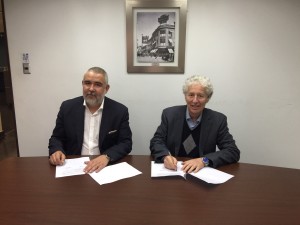 Víctor Grimblatt, presidente de AIE; y Rodrigo Castillo, director ejecutivo de la Asociación de Empresas Eléctricas, sellaron un acuerdo de colaboración mutua entre ambas instituciones,