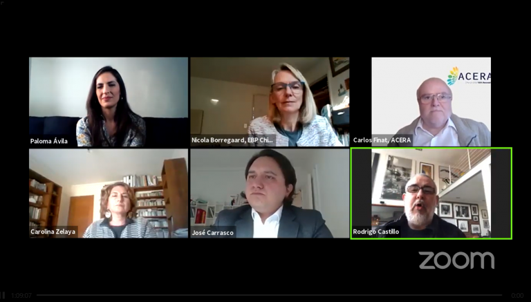 El panel estuvo compuesto también por la Coordinadora de Escenarios Energéticos, Nicola Borregaard; el Jefe de División de Mercados Eléctricos del Ministerio de Energía, José Carrasco; el Director Ejecutivo de ACERA, Carlos Finat y la Consultora Independiente, Carolina Zelaya.