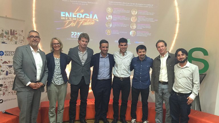 Rodrigo Castillo, director ejecutivo de la Asociación de Empresas Eléctricas A.G., junto a tres ganadores Avonni, Juan Andrés Camus del proyecto Valhalla, Iván Páez de Kappo y Etienne Lefranc de Santiago Cerros Islas; y a cuatro expertos del premio, Nicola Borregaard Coordinadora de División de desarrollo sustentable Ministerio de Energía, Carlos Silva, Investigador CIEN, José Ignacio Escobar Presidente de ACERA y Mauricio Zanotti de La Ruta Solar, conversaron sobre eficiencia energética, nuevos métodos de almacenamiento, medición inteligente, movilidad eléctrica, autogeneración distribuida y cómo todos estos tópicos del mundo energético en el cual están puestos los ojos del futuro del sector, se cruzan y son fundamentales para una sociedad más sustentable y que tome consciencia del uso de los recursos.