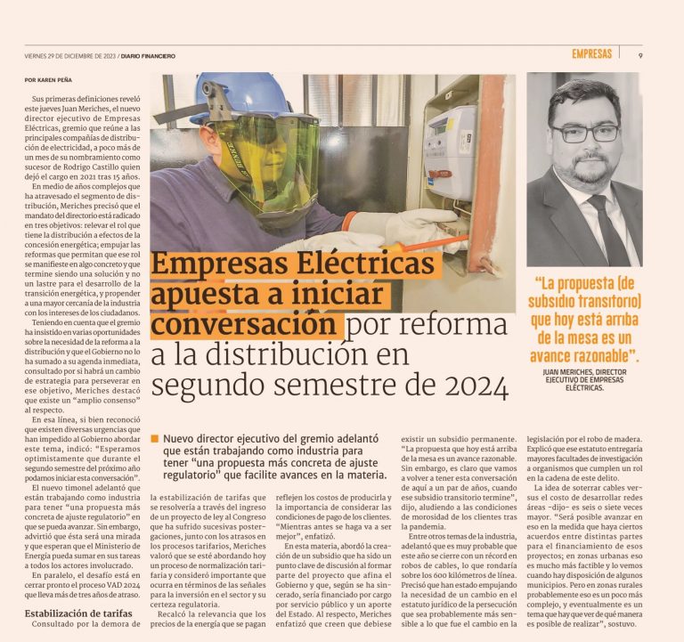 Juan Meriches, destacó la reforma de la distribución como uno de los hitos clave en los que se debe avanzar en 2024.