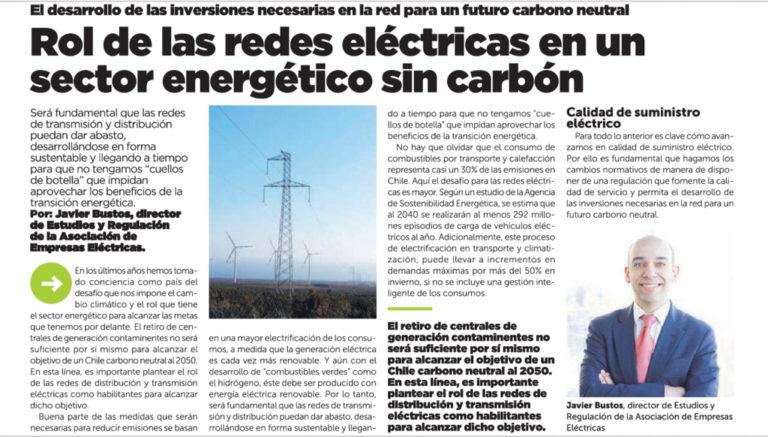 En los últimos años hemos tomado conciencia como país del desafío que nos impone el cambio climático y el rol que tiene el sector energético para alcanzar las metas que tenemos por delante. El retiro de centrales de generación contaminentes no será suficiente por sí mismo para alcanzar el objetivo de un Chile carbono neutral al 2050. En esta línea, es importante plantear el rol de las redes de distribución y transmisión eléctricas como habilitantes para alcanzar dicho objetivo.